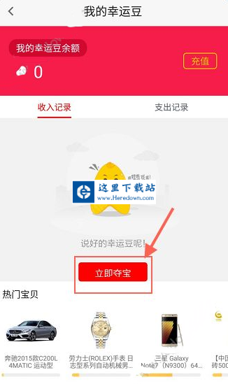 2、在【我的幸运豆】页面,点击【立即夺宝】进入;