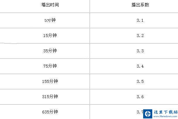 主播每日开播初始系数为3.0,累计播出5分钟加0.1,再播10分钟(累计15分钟)再加0.1,再播20分钟(累计35分钟)再加0.1,再播40分钟(累计75分钟)再加0.1,以此类推。