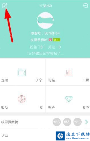 1、用户进入个人中心后,点击左上角的编辑按钮,如下图: