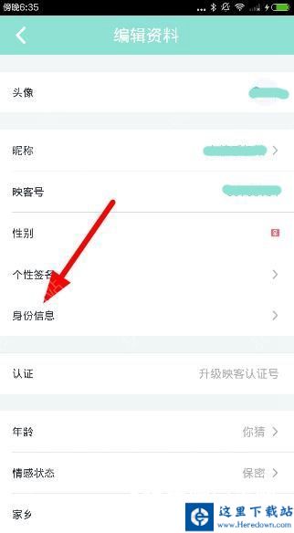 2、然后选择“身份信息”,这个地方要注意了,不要选择“认证”了,如下图: