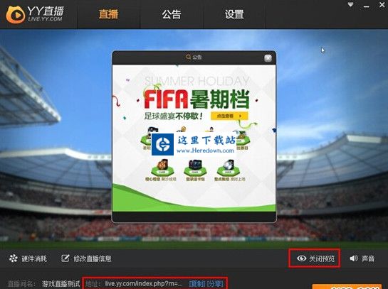 第七:成功上传画面后,您将会看到直播的网页地址。