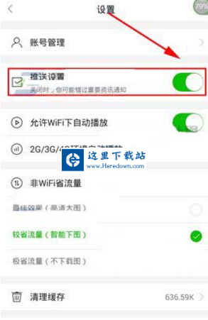 3)最后找到【推送设置】点击旁边的【按钮】即可关闭。