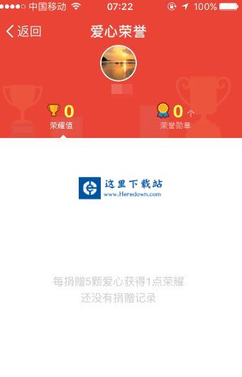 4.当用户捐赠5颗爱心后会获得1点荣誉,此时可以点击蚂蚁庄园页面左上角的头像,之后在“爱心荣誉”页面看到当前所获得的荣誉值以及荣誉勋章;