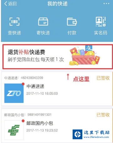 支付宝内搜[我的快递]-[退货补贴快递费],每天都能领一次红·包,线下支持支付宝的店都能抵扣!不领白不领。
