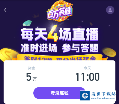 2,、没有看到答题赢钱的可以直接在搜索框搜索,百万英雄即可进入报名,报名成功后会出现答题界面,如下图: