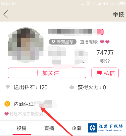 2.刷出一个认证用户点击他的头像进入他的主页面!
