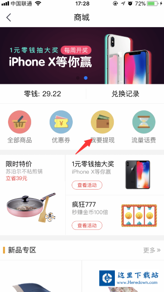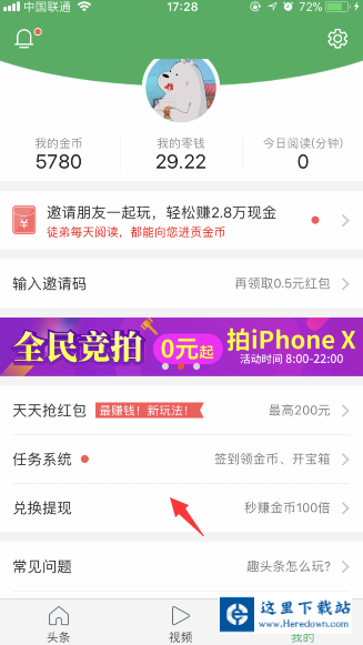 1、打开趣头条,在我的里面即可看到兑换提现功能,如图: