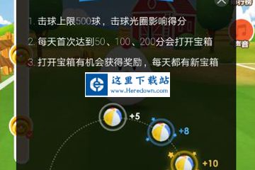每次击球的上限为500个球,通过击球的光圈可以得到相应的分数,分别是5、8、10。