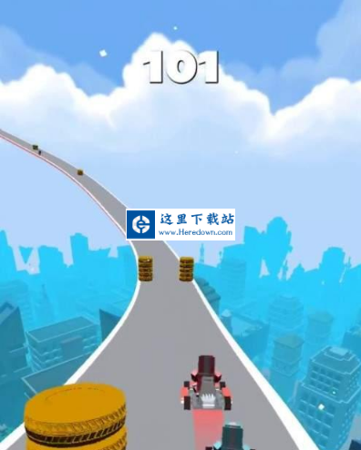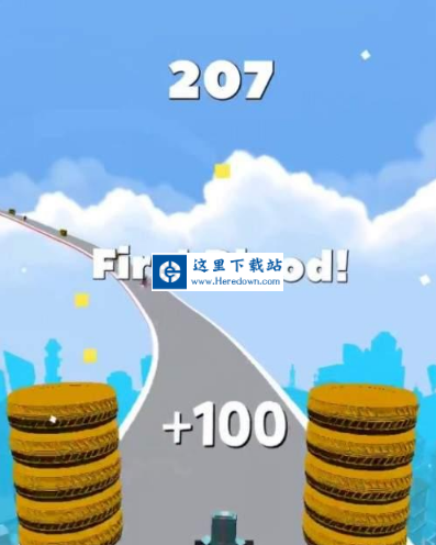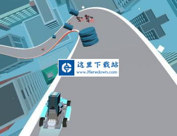 开始游戏后,赛车会自动行驶。这时,我们可以通过左右滑动来控制赛车的方向。跑到的边缘也是可以行驶的,并不会掉下去。