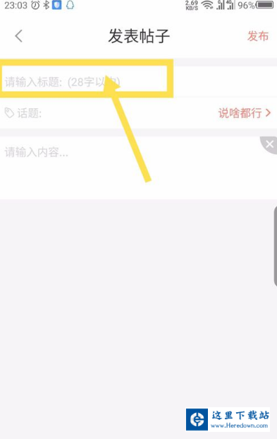 输入完标题后,就可以正式输入帖子内容,在下面点击输入内容。如图所示