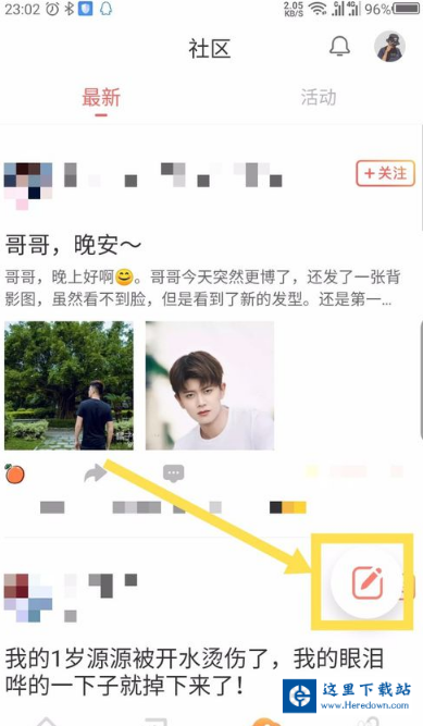 进入到社区里面后,点击右边悬浮的编辑图标。如图所示