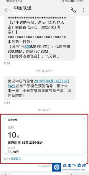 第六步等待一会儿,可以看到话费已经到账了,成功使用花呗充值话费了,如下图所示: