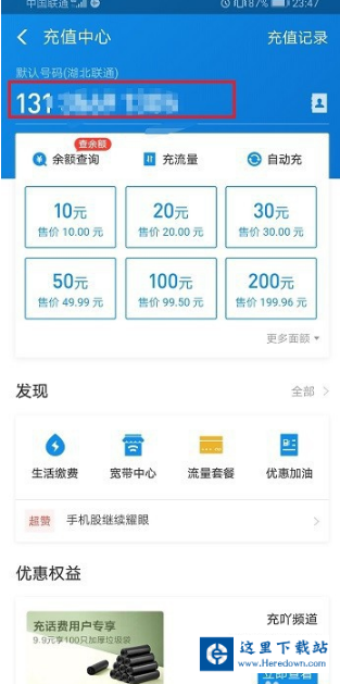 第二步进去充值中心之后,选择要充话费的手机号,如下图所示: