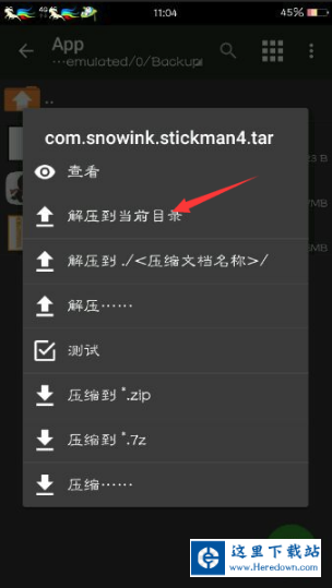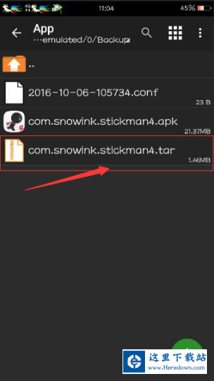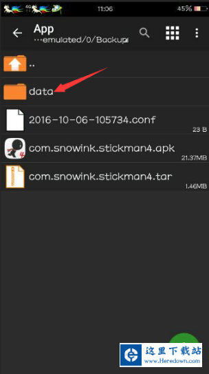3、接着使用ZAchiver打开备份文件的目录,单击最后后缀为tar的文件,解压缩到当前目录,会有一个解压出来的data文件。