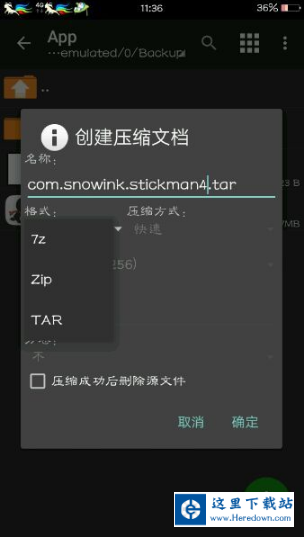 6、打开ZAchiver,把原来的tar格式的压缩包重命名,复制一下他的名称,之后就可以删掉了,再长按修改后的data文件,选择压缩...格式仍然是tar 。