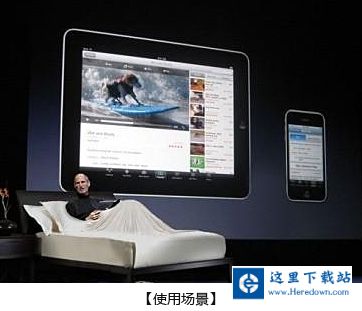 仔细的观察iPad的使用姿势,基本上iPad定位于在沙发上、床上使用的产品,因此我们可以看到9.7英寸屏幕可以为用户带来笔记本电脑的感觉。同时灵敏的触控屏幕和丰富的手势也带来了不错的体验,因此我们都会将iPad放置在腿上或者双手握持状态下来使用。那也就是说iPad自身设计的特性注定了它将如何区别与iPhone,在使用场景也更加偏向于固定位置。 譬如沙发、床上、会议中这类。