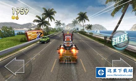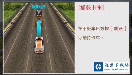 劫持卡车能让玩家在一段时间内处于无敌状态、速度也会加快,而且不费汽油,通过卡车去撞击道路上的汽车还会有积分哦!因此劫持卡车也是提高分数的一个重要的手段。