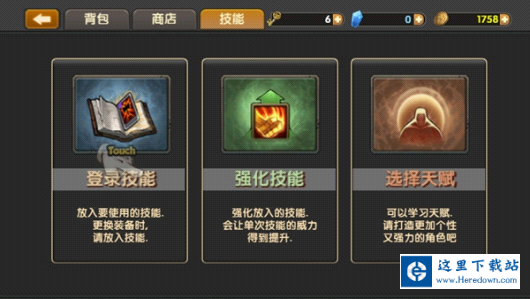 刚才我们提到了战斗部分是游戏的精髓,也是最值得研究的地方,目前可以选择的英雄分为三个职业,狂战士、神枪手以及格斗家!每一个职业的差距都非常的大,拥有完全不同属性成长以及操作方式,技能对于战斗的影响最大,在技能列表中,分为“登陆技能”“强化技能”以及“选择天赋”,顾名思义都比较好理解,玩家要考虑的是如何让角色合理的搭配并且成长,毕竟实际战斗中,特技的位置是固定的,尽量升级最有用的招数才能让战斗变得轻松。