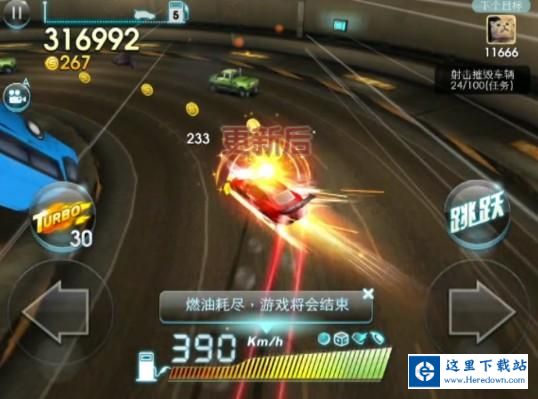 3,转弯,老版本中过弯时会出现减速,虽然过去之后会有加速,但是这个过程较慢;更新后,在过弯的时候会迅速加速到车辆的最高时速。