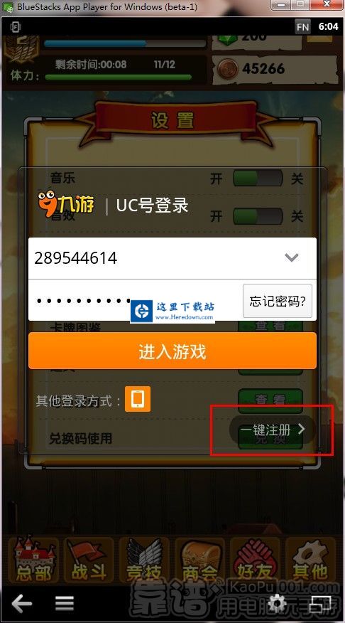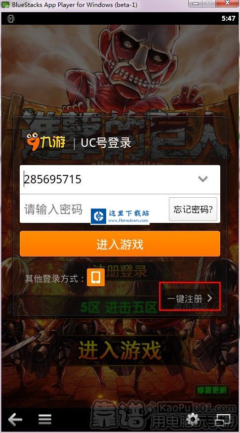 4、安装完成后打开游戏 -- 注册一个游戏号(此号码可以作为大号)-- 记录下大号的账号和密码