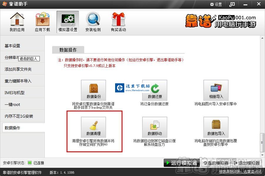 ②点击数据操作界面 -- 数据清理 -- 重启模拟器