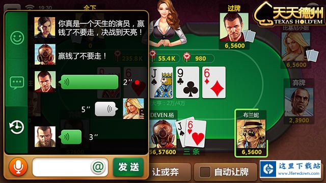 天天德州作为天天系列棋牌类手机游戏,拥有着火爆的人气。《天天德州》目前已在android平台正式发布全新版本,ios平台登陆指日可待。本次新版本不仅加入了独特的“语音聊天”玩法,而且玩家即刻加入到游戏之中,还可领取到丰厚的金币奖励,与牌友们爽快对战。