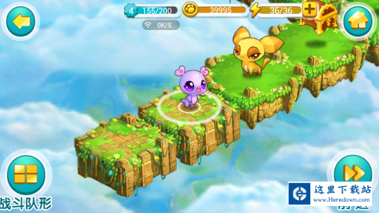 《全民精灵》操作简单,上手没什么困难,主要就是点击和拖动两个操作方式,进入游戏后,玩家首先要做的就是建造自己的房屋,这里有各式各种建筑物供大家选择,还有树木、鸟窝等陪衬物,只需从功能栏用手指轻轻拖动到自己的园地即可。在冒险系统中,只要点击前进按钮就可以搞定一切,战斗系统是游戏自动进行的,所有无需手动操作。