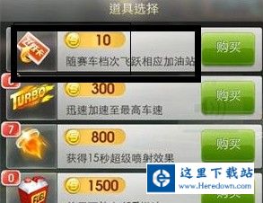 1、全新的道具:飞跃卡,可以通过10金币获得于自己赛车等级相配的飞跃卡,赛车档次越高飞跃的加油站也就越多,当然获得的初始积分也就越高。