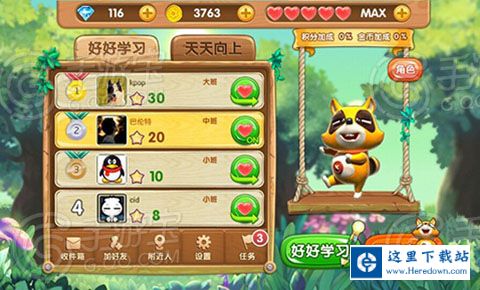游戏共分为好好学习和天天向上两种游戏模式,在物理解谜类玩法好好学习里,贪财又好吃的蛋蛋一次又一次被坏伙伴小松鼠陷害掉入玻璃缸中。你的游戏目的就是,利用手上的各种球类以及随着游戏发展而获得的各类物件帮助它打碎玻璃缸,成功逃出来。