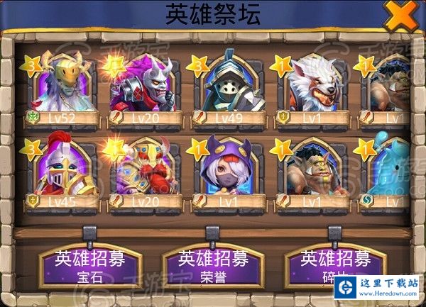 英雄的获得不用着急,手上有什么就先玩什么。那些不太好的英雄升级到60也不会浪费什么,等你的哨塔转化为魔法塔之后把这些残兵老将放进去就行了。英雄的获得主要靠宝石抽取,除了充值购买之外,宝石可以从活动中得到,积极的参加各种活动,你会发现宝石来的很多。