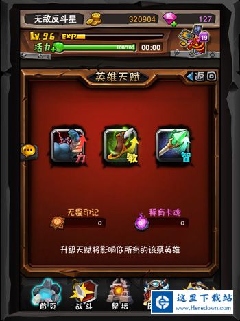 玩家可通过《全民英雄》积分赛获取无畏印记,而稀有卡魂则在献祭卡牌时有几率获得,同时玩家还可在商城中消耗魔钻直接购买稀有卡魂。升级高等级天赋所需的无畏印记较多,所以每日PVP积分赛是不容错过的。同时,玩家在选择核心天赋时也需额外慎重。