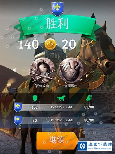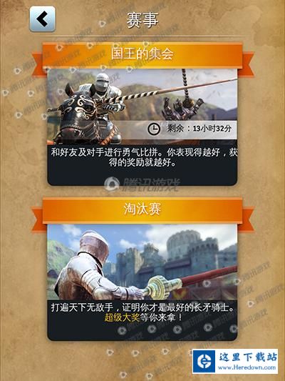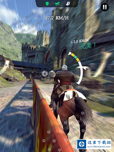 《骑士对决》的操作难度主要在QTE上,在每次对决开场前,会有3,2,1的倒计时,玩家需要在倒计时1即将结束时点击屏幕,如果顺利的话会拿到“完美开局”,速度将大增。冲锋时人物右上角会弹出QTE槽,玩家要在高速移动的指针指向黄色或绿色圆弧时点击屏幕,否则就会错失加速的机会。在加速阶段后,玩家还要用移动矛头快速对准迎面而来的敌人身上的某个部位,以决定最终的伤害值。如果玩家没有较强的节奏感,可能会在连续QTE环节吃亏,但只要能耐心的练上几局,或者换一些更易操控的马匹,连续QTE的问题多少是能解决的。整体来看上手不是难题,大家好好操练吧。
