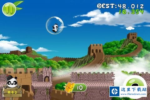 游戏画面整上看中国风浓郁。2D画面呈现出的画质非常精致细腻,熊猫的造型憨态可掬,十分可爱。各种道具和障碍,诸如长城、竹林等洋溢着浓郁中国风的地图场景,都非常养眼,让玩家在紧张刺激的游戏过程中丝毫感觉不到视觉疲劳。