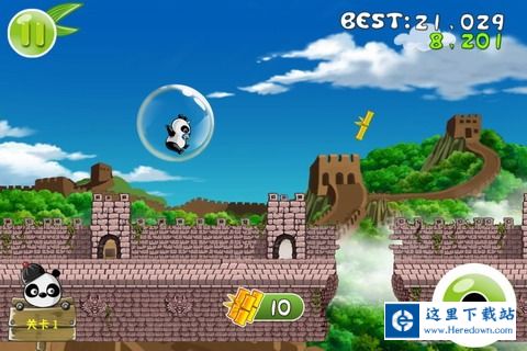 这款游戏中包含着丰富的内容和大量道具。玩家随着挑战时间和积分的递增可以逐渐培养所控制的熊猫慢慢长大,变得更加强壮,最后成长为一只无敌熊猫,屁王!另外,肥皂泡、各种能加分和补充能量的竹子、可以使玩家一飞冲天的火箭和炮竹等道具,都能给玩家带来有趣的游戏体验,比之前作富有很大创新。