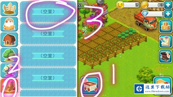 方法:如图,长按住某个物品(养动物的猪圈羊圈类的不可回收,建筑物不可回收。)然后点击一个箱子样的东西,即可在商城中找到。(楼楼图2中标的1,2,3是怎么找到回收了的物品的方法顺序。)还有,取出来的时候在商城里找然后拖拽出来就可以啦!!!