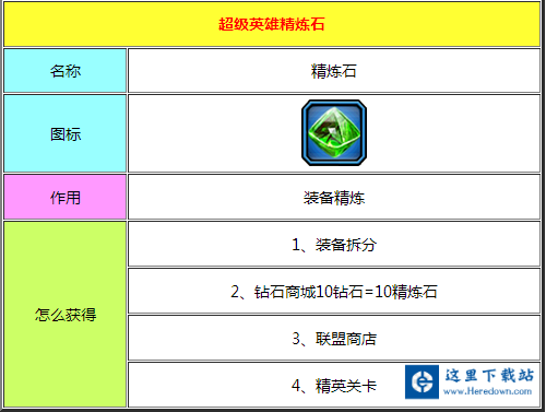 1.精英副本:超级英雄每个精英副本都会掉落5至10个不等的精炼石,这些精炼石会放入你的背包,要点击使用才会放入你的精炼系统里,因为之前也挺多英雄问小编,为什么我副本打完精炼石一个都没有呢,那是因为都放进了背包,英雄们可能没注意到。