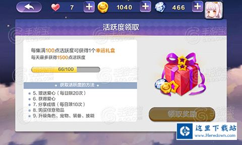 活跃度抽奖:每天集满100点活跃度就可以获得一个幸运礼盒,每日最多能拿15个,开启礼盒可以获得钻石或者金币,奖励还是非常丰富的!