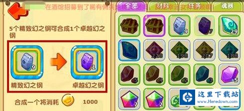 1.最直接的方式就是合成,5个精致幻之钢可以合成1个卓越幻之钢,操作方法很简单,打开背包,点击右下角合成按钮,然后点击精致幻之钢,再选择合成一个或者全部合成就OK了。