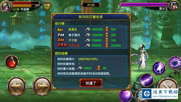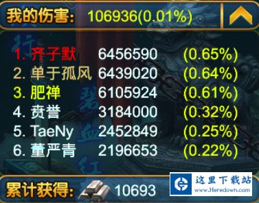 我的伤害:你对BOSS造成的伤害,百分数为你在团队里的付出。