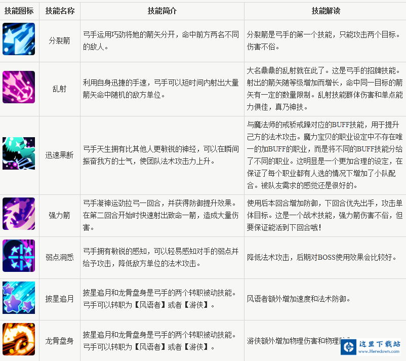 弓手拥有3个输出型技能,单体伤害和多体伤害兼具。由于是远程弓箭攻击,可以直接命中敌方的后排单位。所以一个出色的弓手可以圆满承担战斗中ADC的位置。