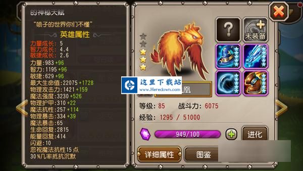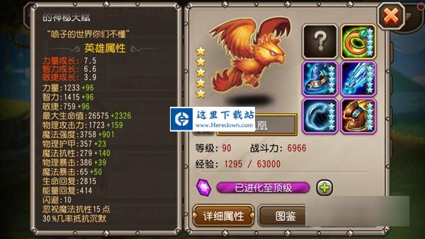 这的确是披着力量英雄外衣的法师中排。力量与智力成长相差不大,都处于一个较高的数值。90级满装备附魔达到护甲380、法抗419、血量近2.9w,它在中排还能混的下去,这是保证第一条命开大前血量的重要条件!而且4600+的魔法强度也为凤凰的输出带来了保证。