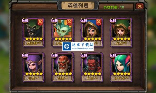 英雄管理功能:查看和管理玩家当前已经获取到的英雄,如图