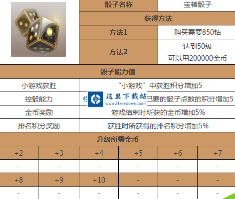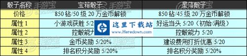 从骰子价格来看,宝箱和星落售价基本一样,不同的是金币解锁宝箱骰子比星落骰子要高5级,属性方面控骰能力和排名积分奖励两项基本一样,不同的是宝箱骰子的另外两项属性为:小游戏获胜、金币奖励加成,星落骰子为:建设费用打折优惠、好运当头,那么这两项对玩家来说就造成了选择的难题。