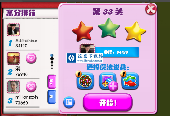 1. 玩家选择任意一个关卡,将排名画面进行截图并分享到微信朋友圈,QQ空间,腾讯微博或者新浪微博,并附上文字,如“我喜爱的糖果传奇,集赞享好礼,朋友们快来赞我吧。”