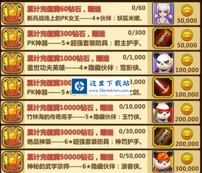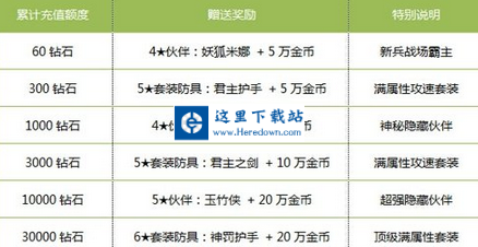 例如,您在版本更新前,已经累积充值60000钻石,则您在版本更新后,将直接完成所有任务,并得到对应奖励;如果您在版本更新前,已经累积充值360钻石,则您在版本更新后,将直接完成60钻石和300钻石所对应的任务,并获得相应奖励。
