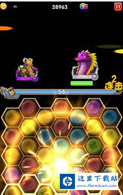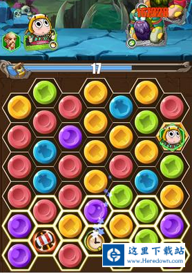 当画面中出现英雄头像,只需将周围宝石消除,待其落到底层后就会发出强大技能,对怪物造成大量伤害。