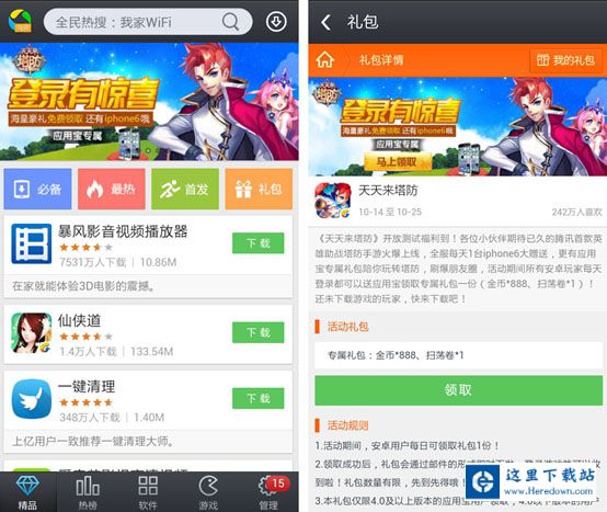 《天天来塔防》目前已经正式的登录应用宝平台啦!其拥有丰富的玩法、清爽的画风,是2014年度最值得期待的塔防大作,游戏自上线以来就受到了广大玩家的关注,短短几天内,上百万游戏玩家纷纷登陆应用宝抢先体验这款塔防手游大作。而拥有海量热门手游礼包的腾讯应用宝刚送上独家的抢号大礼,又于10月16日为手游玩家准备了丰厚的游戏礼包,可谓是游戏礼包哪家强,快找腾讯应用宝。