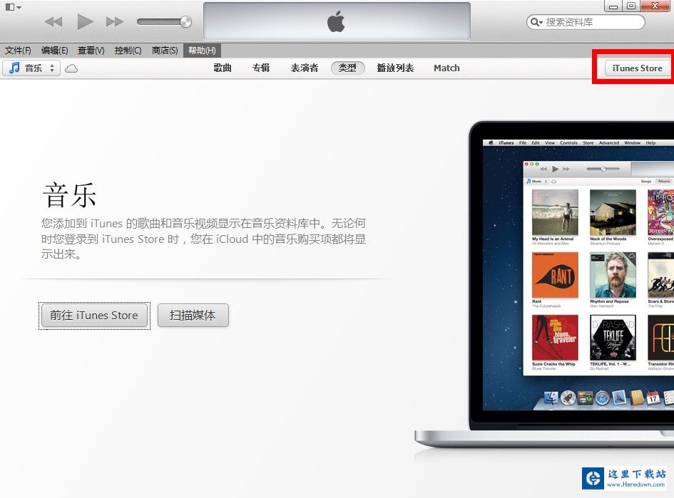1、连接苹果设备,打开iTunes,打开以后点击右侧的“iTunes Store”;