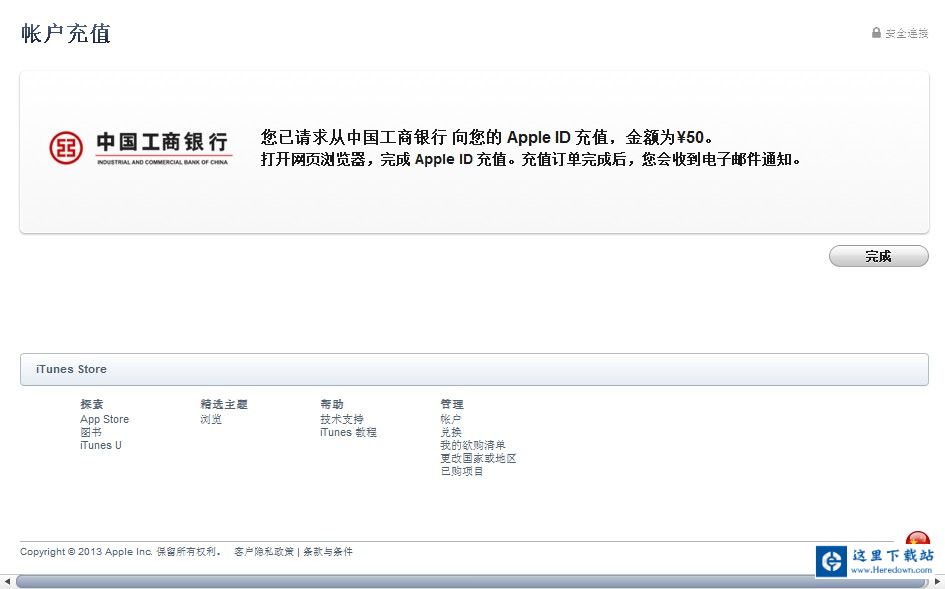 银行卡网上付费的步骤,这里就不具体说明了,充值完成后,回到你的iTunes,稍等后刷新账户,查询是否充值成功。