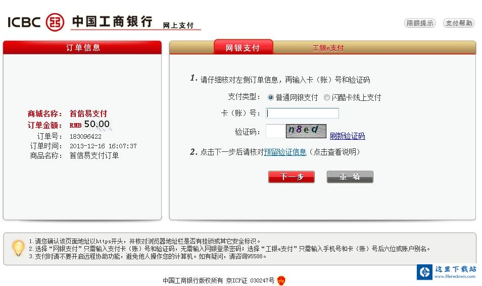 2、跳转到以下页面,点击“完成”跳转到银行付款页面;